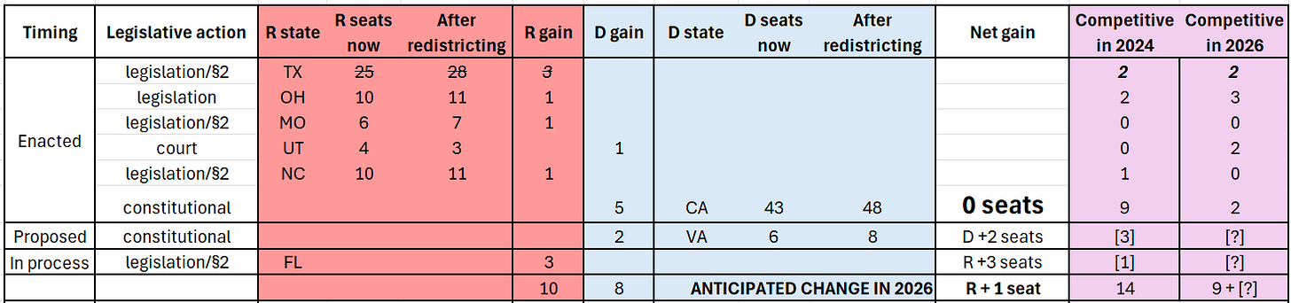 It’s looking like the redistricting wars are slowing down, at least today. Some of this cooling may arise from recognition that control of Congress is slipping away in 2026. That’s a practical reason, not a principled one. But it’s still worth celebrating.