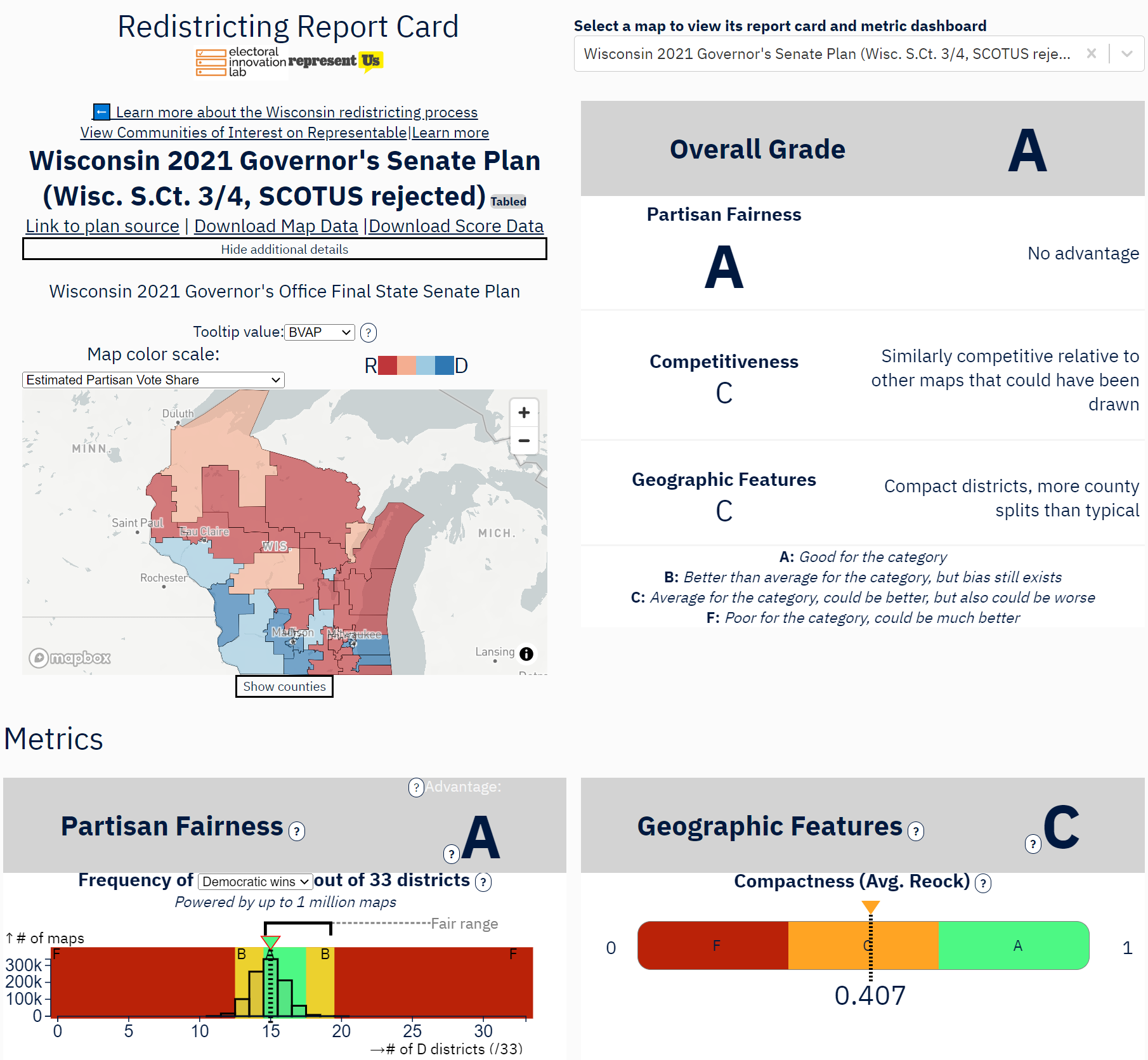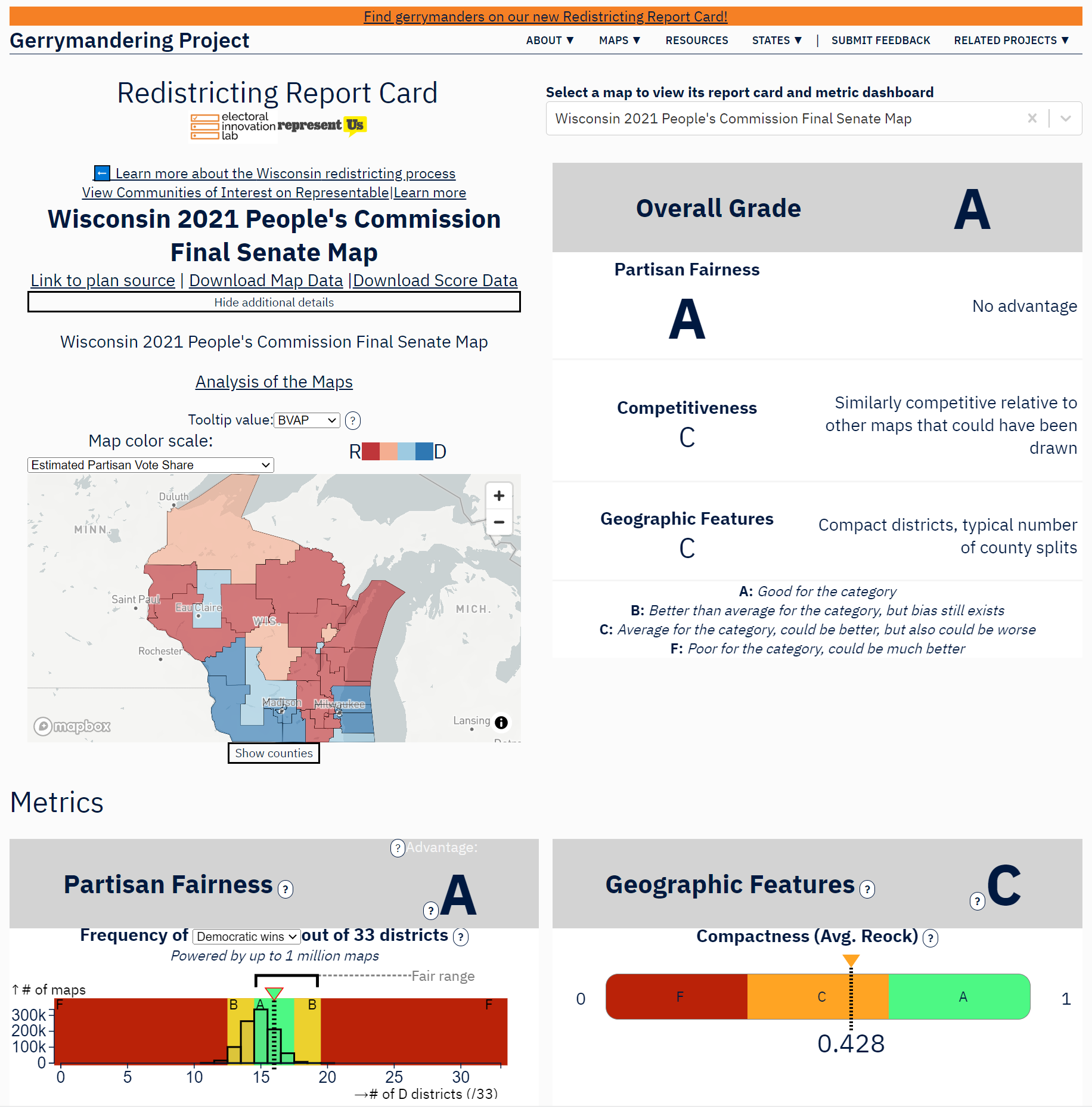 The Princeton Gerrymandering Project has developed just such a standard, based on quantitative measures of racial and partisan balance. PGP can estimate a map’s performance using voting data, then run these measures through a rubric to produce letter grades and a report card. Overall, this approach works well in a variety of states, red, blue, and purple.